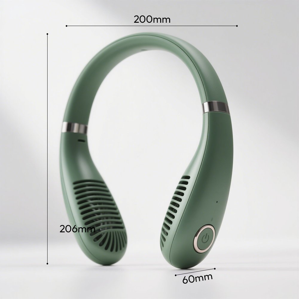 Leichter, tragbarer Nackenventilator mit USB-Aufladung, drei Geschwindigkeitsstufen, leiser Betrieb und freihändiges Design für unterwegs, Büro, Reisen und Sport.